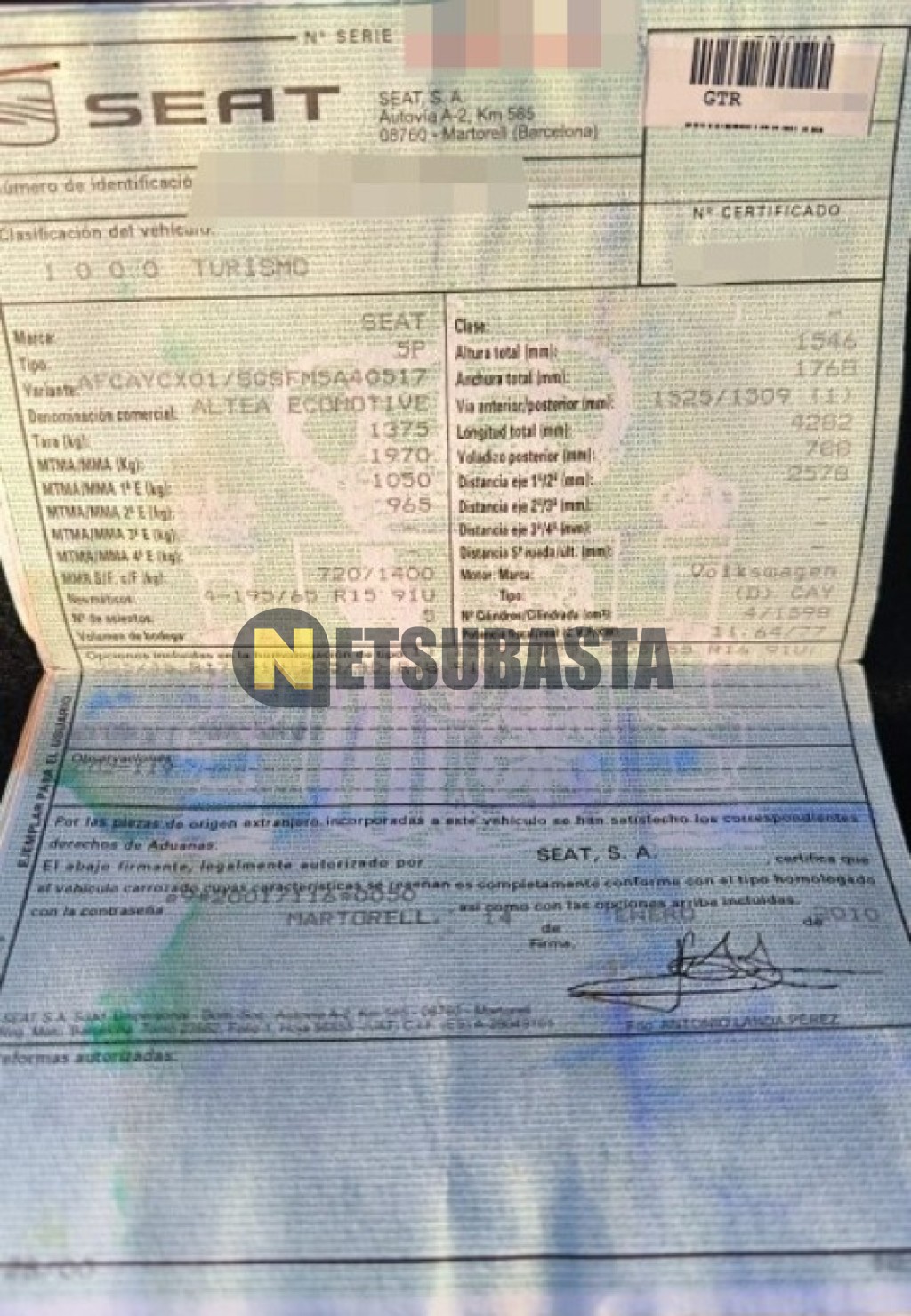 Subasta de Seat Altea 1.6 TDI 2010 Averiados, Marca Seat, Modelo Altea 1.6 TDI, Combustible Diésel, Kilometraje 291.000 KM, Fecha 1ª matriculación 02/2010, Matrícula ****GTR, Color Exterior , Color Interior , IVA REBU y Ubicación Málaga.