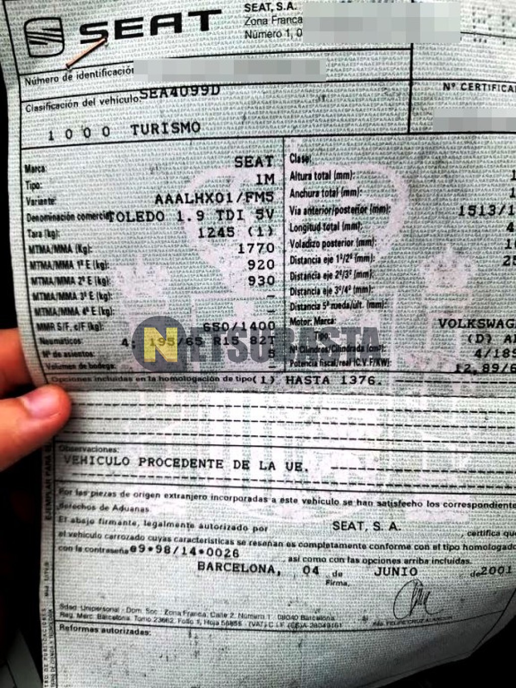 - Modelo:Toledo 1.9 TDi