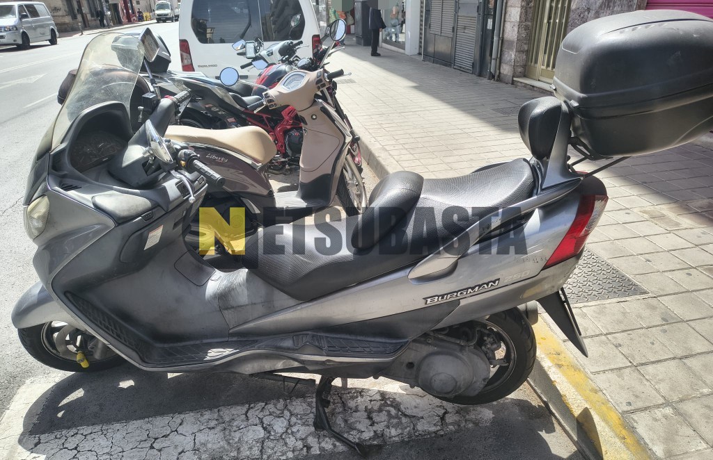 Subasta de Suzuki BURGMAN 250 2007 Averiados, Marca Suzuki, Modelo BURGMAN 250, Combustible Gasolina, Kilometraje 75.000 KM, Fecha 1ª matriculación 06/2007, Matrícula ****FRR, Color Exterior , Color Interior , IVA REBU y Ubicación Alicante.