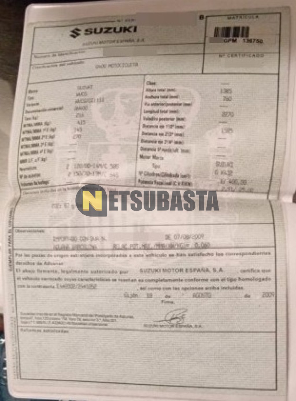 Subasta de Suzuki BURGMAN 400 2009 Siniestrados, Marca Suzuki, Modelo BURGMAN 400, Combustible Gasolina, Kilometraje 92.000 KM, Fecha 1ª matriculación 09/2009, Matrícula ****GPM, Color Exterior , Color Interior , IVA REBU y Ubicación Toledo.