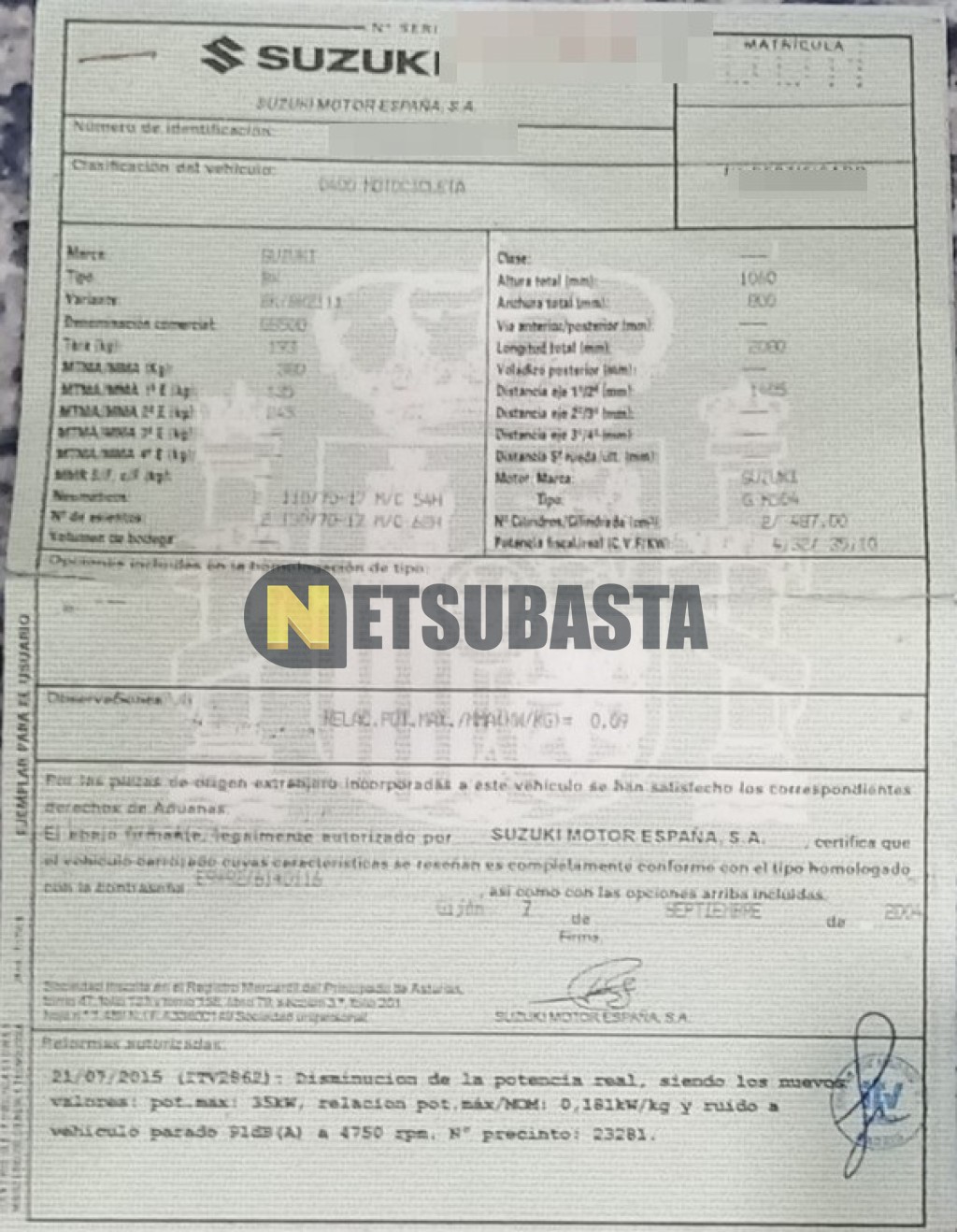 Subasta de Suzuki GS 500 2004 Averiados, Marca Suzuki, Modelo GS 500, Combustible Gasolina, Kilometraje 84.000 KM, Fecha 1ª matriculación 12/2004, Matrícula ****DNN, Color Exterior , Color Interior , IVA REBU y Ubicación Madrid.