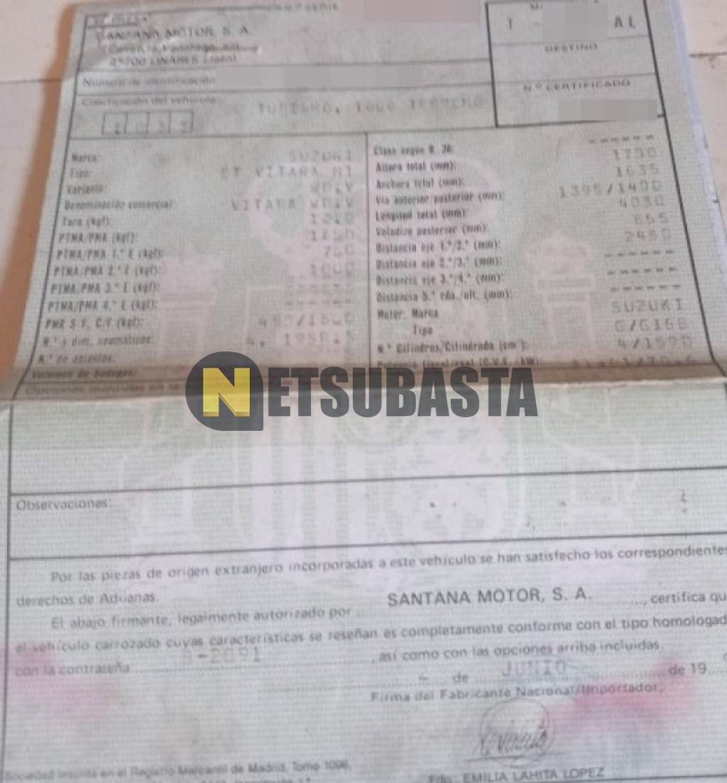 Recuerde que si lo desea, puede imprimir la ficha del vehículo Suzuki Vitara 1.6 1994 con todas sus características técnicas.