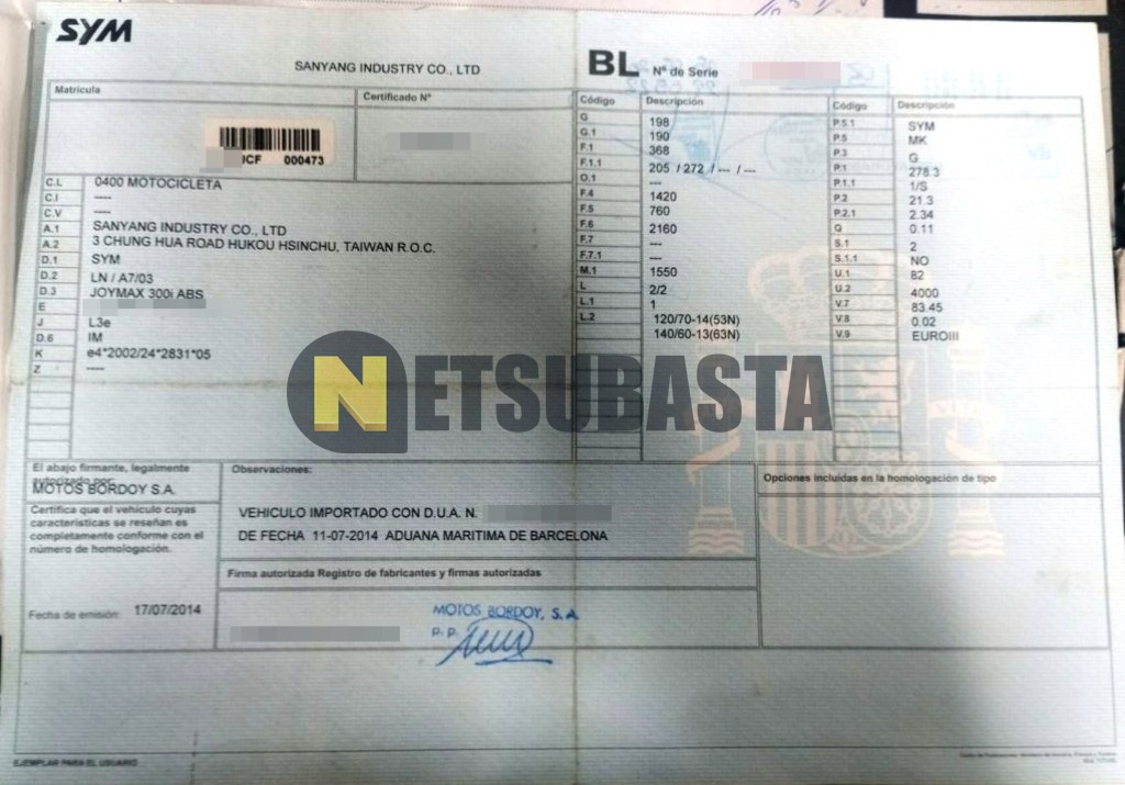 Subasta de SYM Joymax 300i ABS 2015 Averiados, Marca SYM, Modelo Joymax 300i ABS, Combustible Gasolina, Kilometraje 65.000 KM, Fecha 1ª matriculación 01/2015, Matrícula ****JCF, Color Exterior , Color Interior , IVA REBU y Ubicación Islas Baleares.
