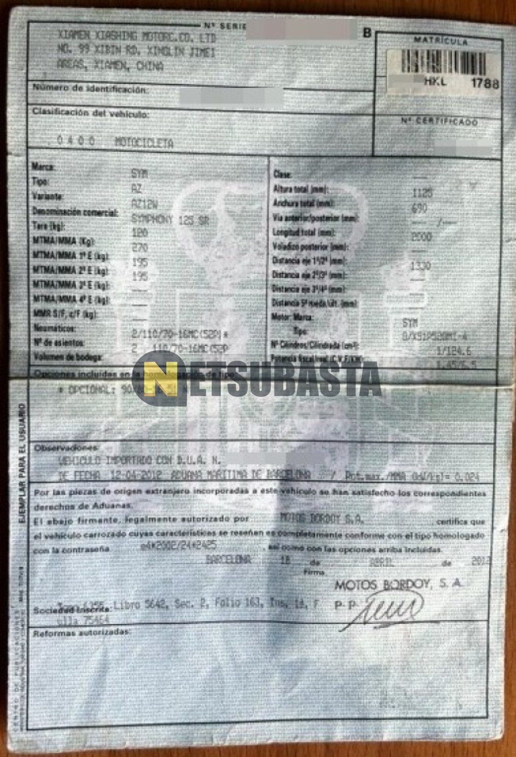 Subasta de SYM Symphony 125 SR 2012 Averiados, Marca SYM, Modelo Symphony 125 SR, Combustible Gasolina, Kilometraje 13.000 KM, Fecha 1ª matriculación 05/2012, Matrícula ****HKL, Color Exterior , Color Interior , IVA REBU y Ubicación Barcelona.