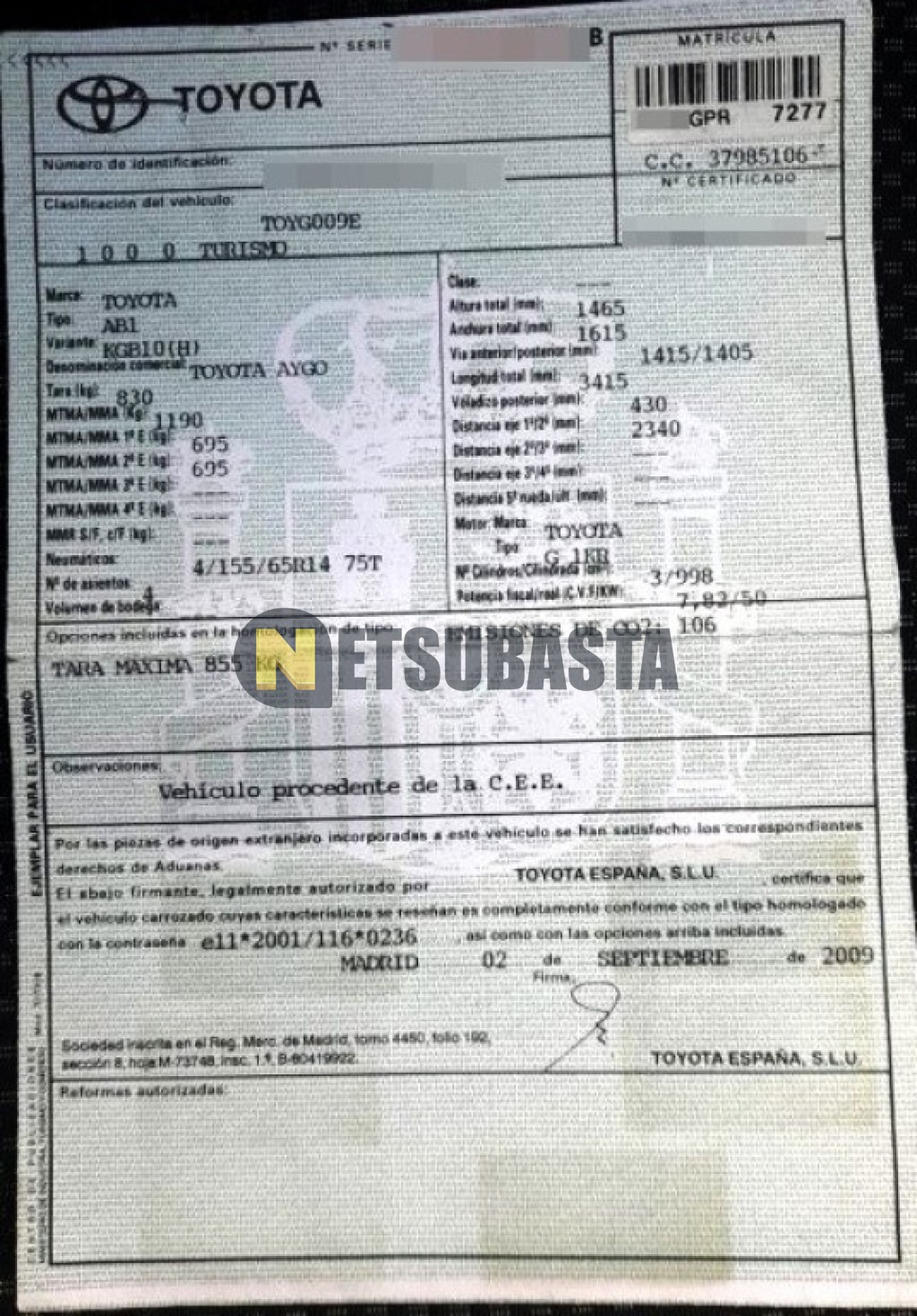 - Modelo:Aygo 1.0 VVT-i