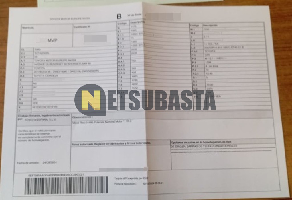 Subasta de Toyota Corolla Touring Sports 140H 2024 Siniestrados, Marca Toyota, Modelo Corolla Touring Sports 140H, Combustible Híbrido (Electro/Gasolina), Kilometraje 50.000 KM, Fecha 1ª matriculación 10/2024, Matrícula ****MVP, Color Exterior , Color Interior , IVA IVA Deducible y Ubicación Cantabria.