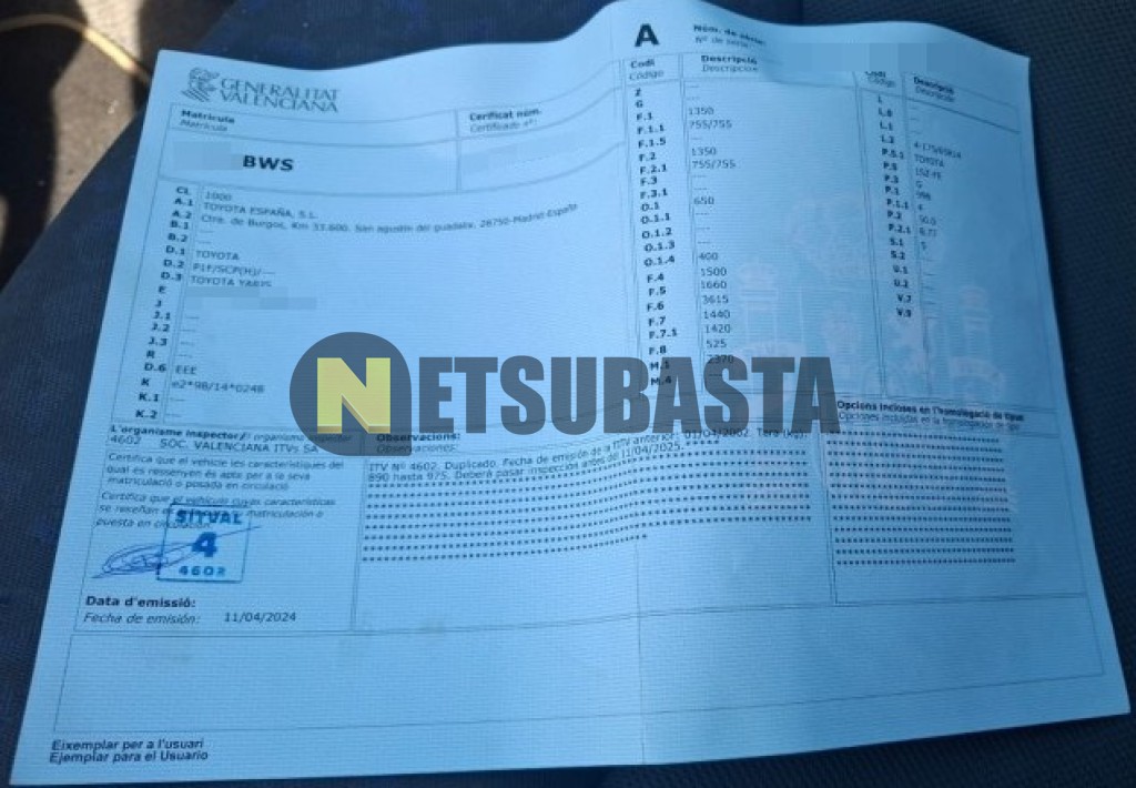 Subasta de Toyota Yaris 1.0 VVT-i 2002 Averiados, Marca Toyota, Modelo Yaris 1.0 VVT-i, Combustible Gasolina, Kilometraje 185.000 KM, Fecha 1ª matriculación 05/2002, Matrícula ****BWS, Color Exterior , Color Interior , IVA REBU y Ubicación Valencia.
