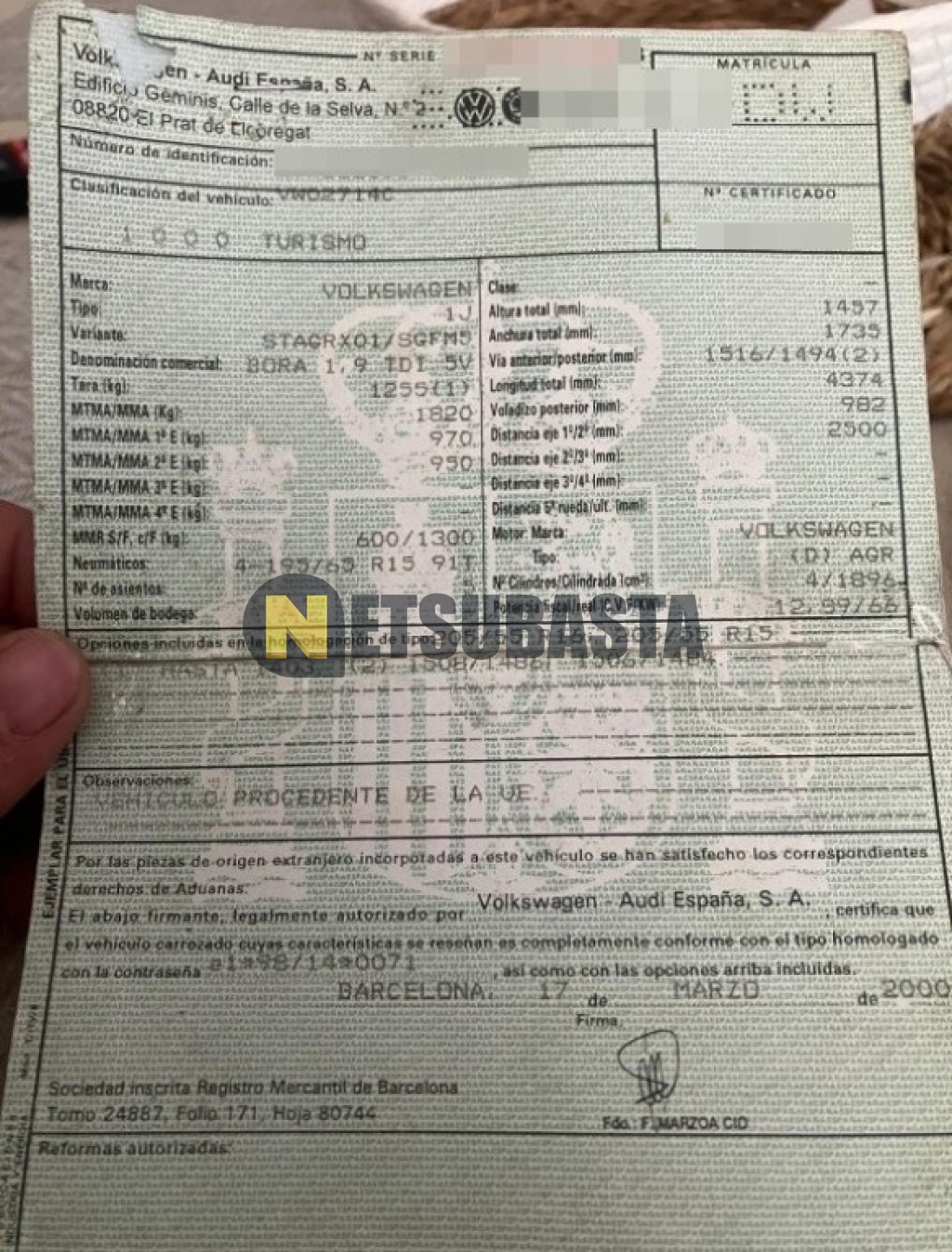Subasta de Volkswagen Bora 1.9 TDI 2000 Averiados, Marca Volkswagen, Modelo Bora 1.9 TDI, Combustible Diésel, Kilometraje 330.000 KM, Fecha 1ª matriculación 08/2000, Matrícula SE****DW, Color Exterior , Color Interior , IVA REBU y Ubicación Sevilla.