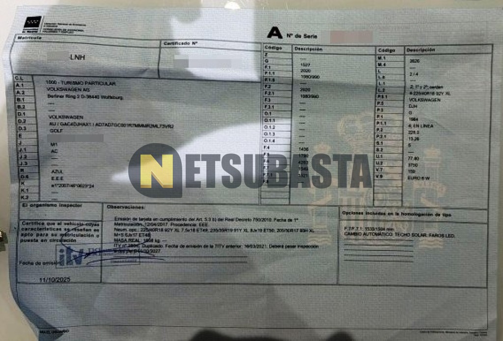 Subasta de Volkswagen Golf R 2.0 TSI DSG 7 vel. 2017 Siniestrados, Marca Volkswagen, Modelo Golf R 2.0 TSI DSG 7 vel., Combustible Gasolina, Kilometraje 150.000 KM, Fecha 1ª matriculación 04/2017, Matrícula ****LNH, Color Exterior , Color Interior , IVA REBU y Ubicación Granada.