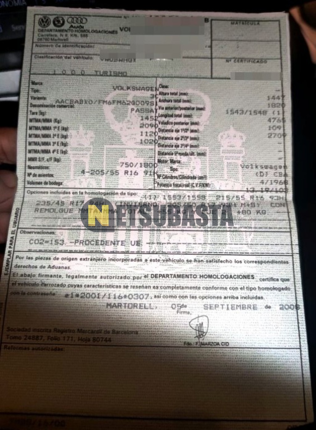 Recuerde que si lo desea, puede imprimir la ficha del vehículo Volkswagen Passat 2.0 TDI 2008 con todas sus características técnicas.