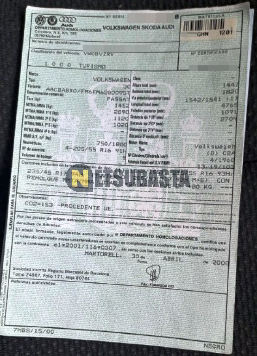 - Matrícula:****GHN