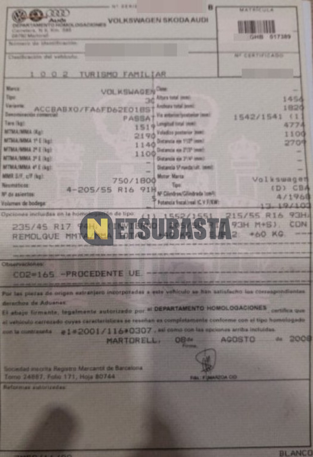 Subasta de Volkswagen Passat Variant 2.0 TDI CR DPF DSG 2008 Siniestrados, Marca Volkswagen, Modelo Passat Variant 2.0 TDI CR DPF DSG, Combustible Diésel, Kilometraje 220.000 KM, Fecha 1ª matriculación 08/2008, Matrícula ****GHB, Color Exterior , Color Interior , IVA REBU y Ubicación Madrid.