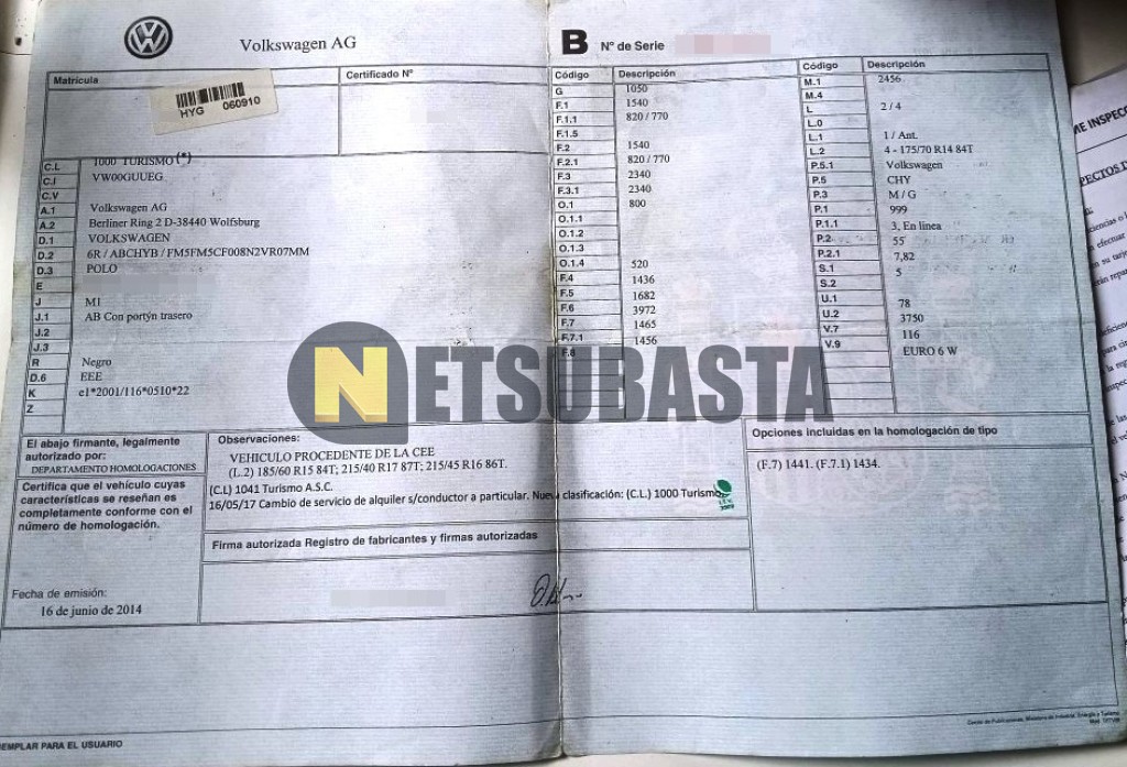 Subasta de Volkswagen Polo 1.0 2014 Averiados, Marca Volkswagen, Modelo Polo 1.0, Combustible Gasolina, Kilometraje 132.000 KM, Fecha 1ª matriculación 07/2014, Matrícula ****HYG, Color Exterior , Color Interior , IVA REBU y Ubicación Las Palmas.