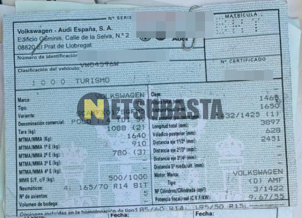 Subasta de Volkswagen Polo 1.4 TDI 2002 Averiados, Marca Volkswagen, Modelo Polo 1.4 TDI, Combustible Diésel, Kilometraje 238.000 KM, Fecha 1ª matriculación 01/2002, Matrícula ****BRY, Color Exterior , Color Interior , IVA REBU y Ubicación Islas Baleares.