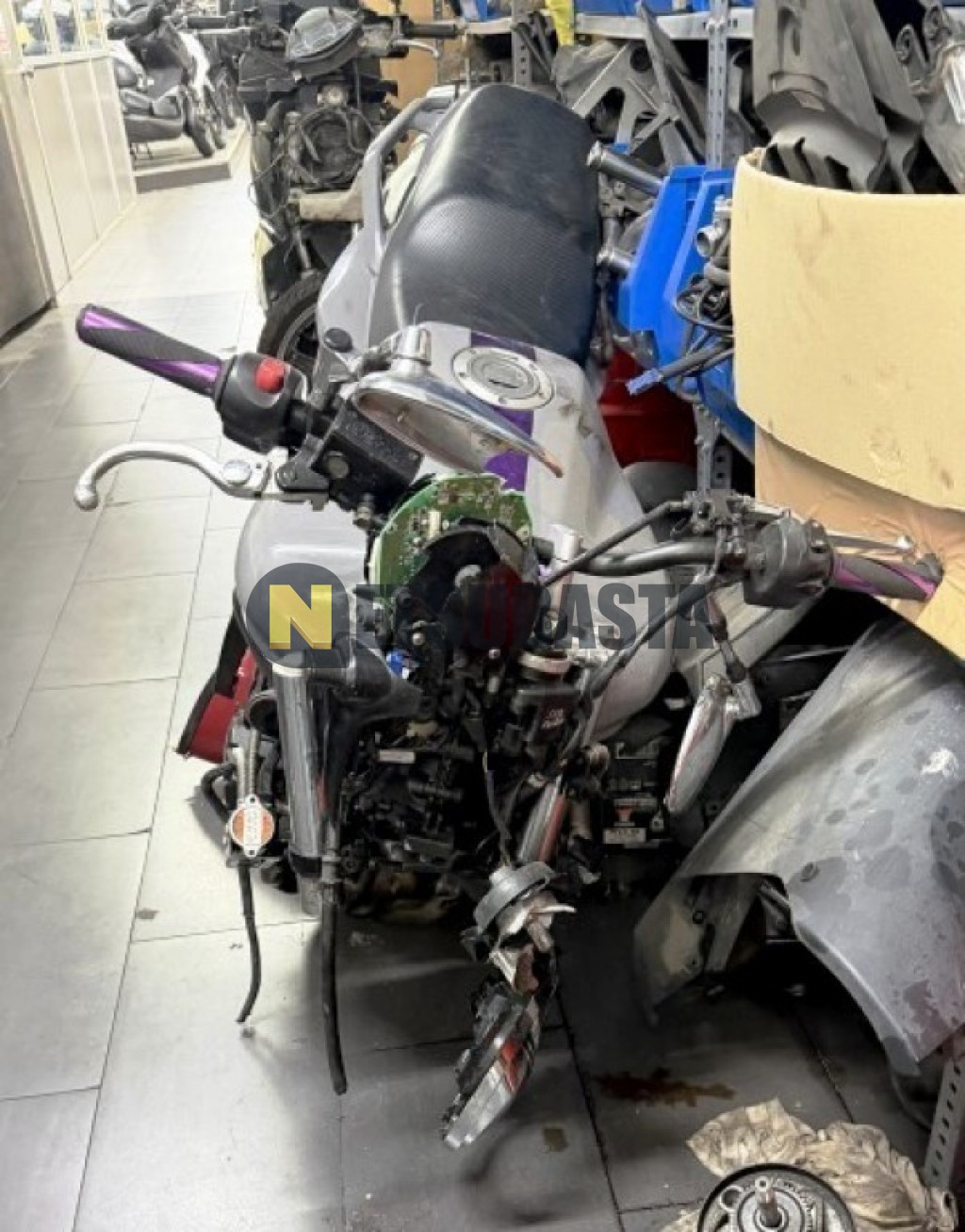 Vehículo con daños en carenados, pintura y mecánica acordes a las fotografías. Sin comprobar el alcance de daños. Kilometraje sin verificar. Vehículo parcialmente desmontado para su comprobación. Sin comprobar posibles piezas faltantes.