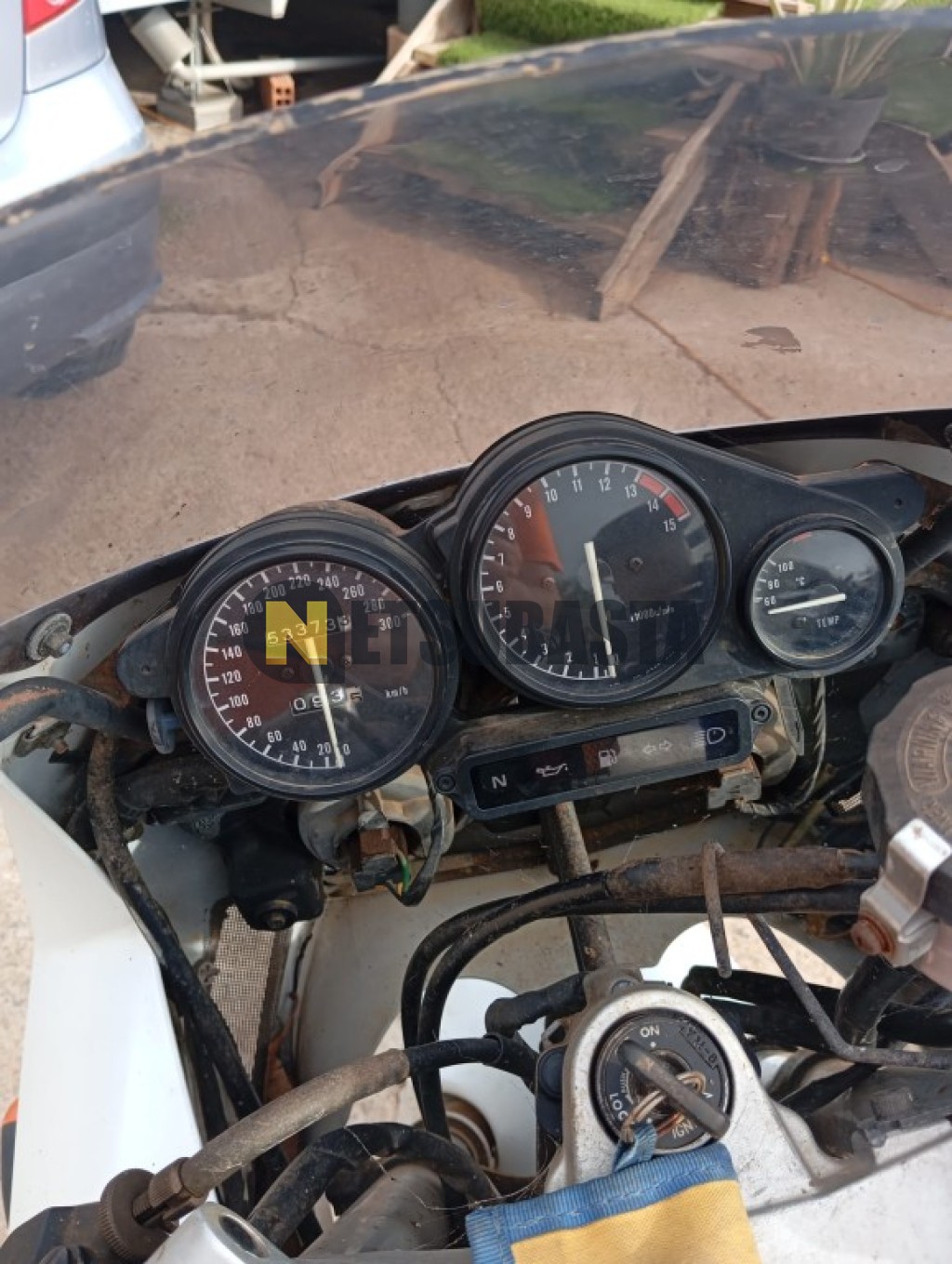Avería en motor. Posible pistón afectado. Sin comprobar avería o alcance de la misma.Vehículo con daños en carenados y pintura acordes a las fotografías. Sin comprobar el alcance de daños.Parado durante una larga estancia. Batería agotada.