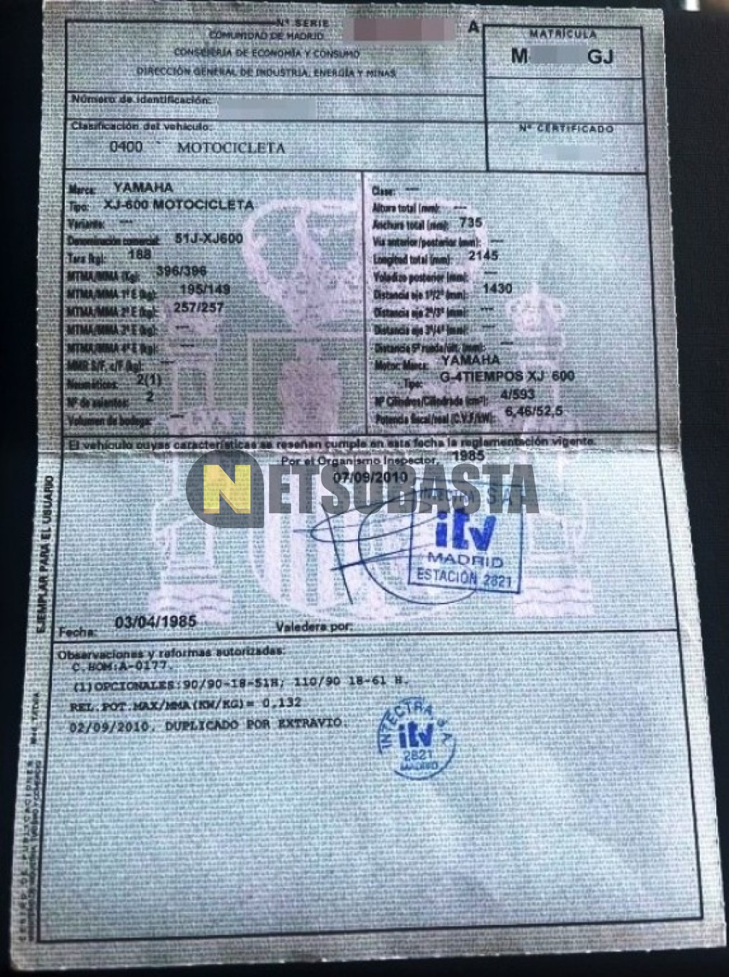 Subasta de Yamaha XJ 600 1985 Averiados, Marca Yamaha, Modelo XJ 600, Combustible Gasolina, Kilometraje 48.000 KM, Fecha 1ª matriculación 05/1985, Matrícula M****GJ, Color Exterior , Color Interior , IVA REBU y Ubicación Madrid.