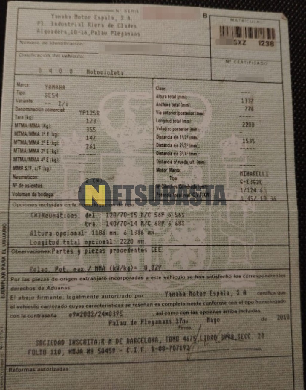 Subasta de Yamaha XMAX 125 2010 Averiados, Marca Yamaha, Modelo XMAX 125, Combustible Gasolina, Kilometraje 90.000 KM, Fecha 1ª matriculación 07/2010, Matrícula ****GXZ, Color Exterior , Color Interior , IVA REBU y Ubicación Barcelona.