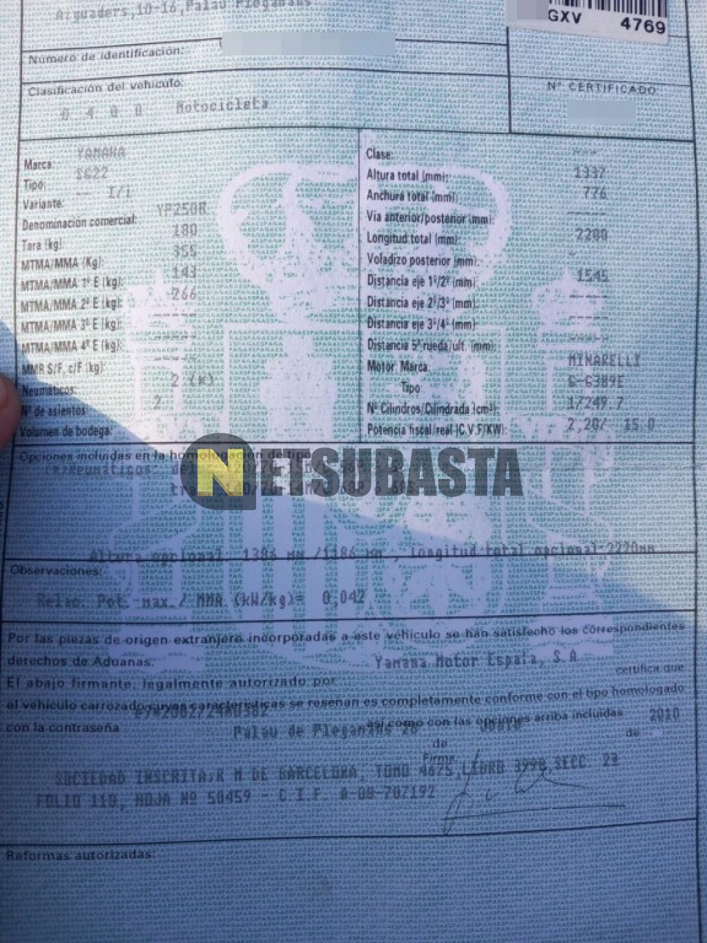 Subasta de Yamaha XMAX 250 2010 Siniestrados, Marca Yamaha, Modelo XMAX 250, Combustible Gasolina, Kilometraje 12.000 KM, Fecha 1ª matriculación 07/2010, Matrícula ****GXV, Color Exterior , Color Interior , IVA REBU y Ubicación Gerona.