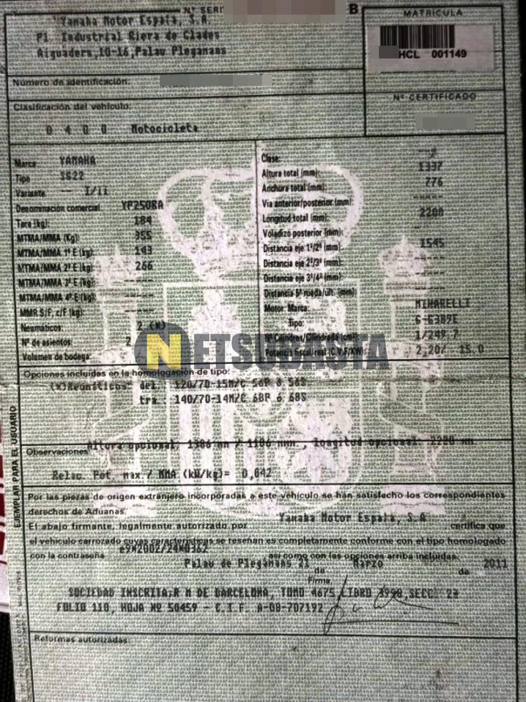 - Permiso de circulación:Si