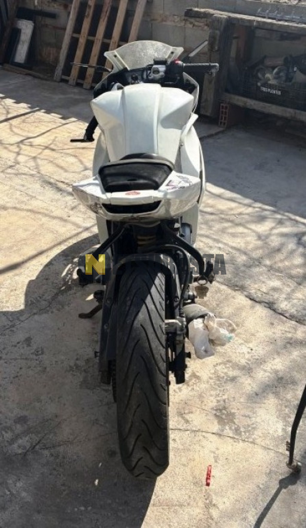 Avería en motor. Posible cilindro y biela afectados. Sin comprobar avería o alcance de la misma. El vehículo no realiza la puesta en marcha.Vehículo con daños en carenados, pintura y mecánica acordes a las fotografías. Sin comprobar el alcance de daños. Kilometraje sin verificar. El vehículo se entrega sin piloto trasero y sin intermitentes. Sin comprobar posibles piezas faltantes.Parado durante una larga estancia. Batería agotada.