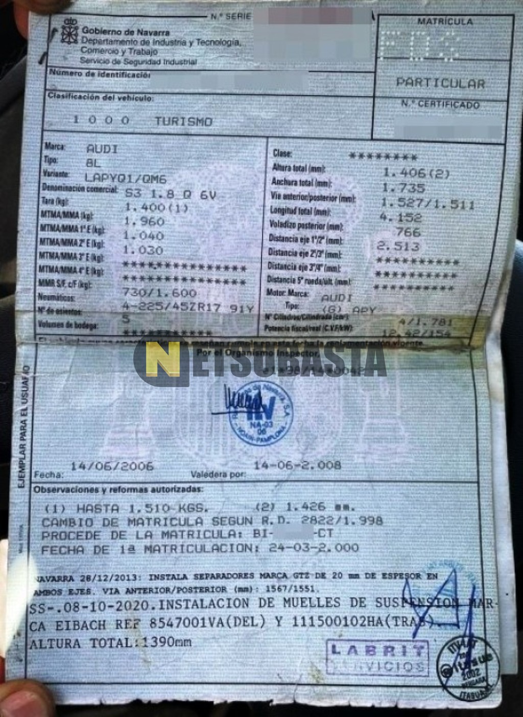 Subasta de Audi S3 1.8 T quattro 2000 Averiados, Marca Audi, Modelo S3 1.8 T quattro, Combustible Gasolina, Kilometraje 292.000 KM, Fecha 1ª matriculación 03/2000, Matrícula ****FDS, Color Exterior , Color Interior , IVA REBU y Ubicación Guipúzcoa.