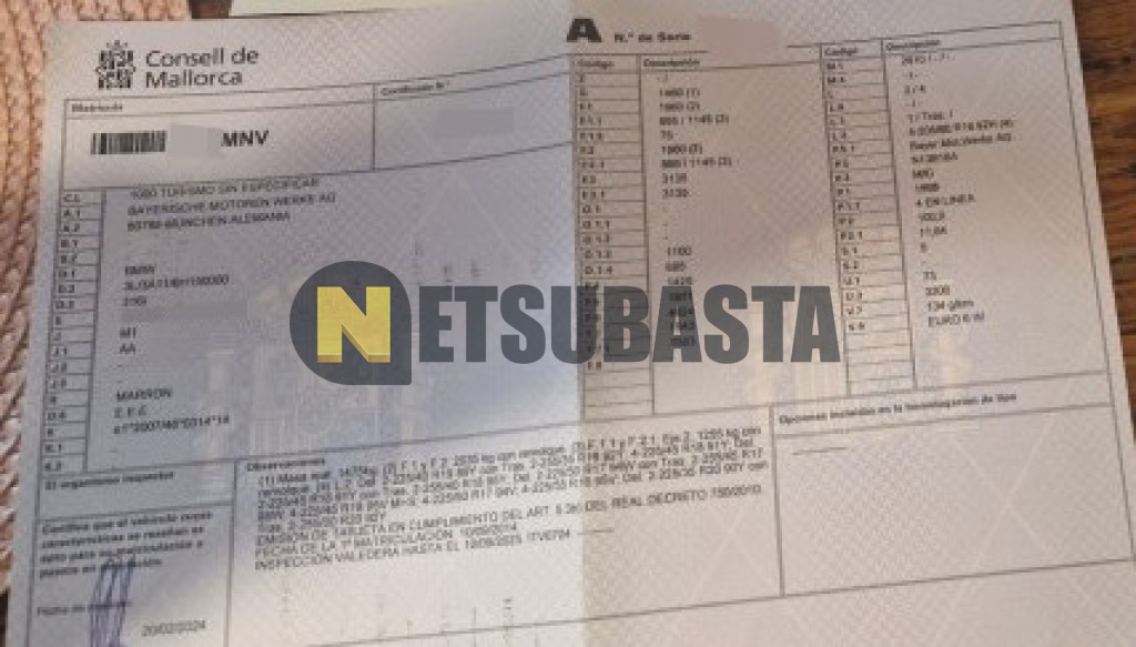 Subasta de Bmw 316i 2014 Siniestrados, Marca Bmw, Modelo 316i, Combustible Gasolina, Kilometraje DESCONOCIDO, Fecha 1ª matriculación 09/2014, Matrícula ****MNV, Color Exterior , Color Interior , IVA REBU y Ubicación Islas Baleares.