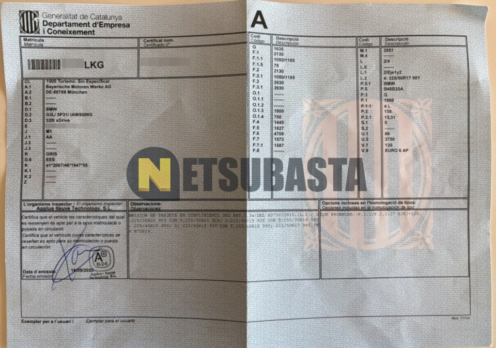 Subasta de Bmw 320i xDrive 2020 Siniestrados, Marca Bmw, Modelo 320i xDrive, Combustible Gasolina, Kilometraje 182.000 KM, Fecha 1ª matriculación 10/2020, Matrícula ****LKG, Color Exterior , Color Interior , IVA IVA Deducible y Ubicación Valencia.