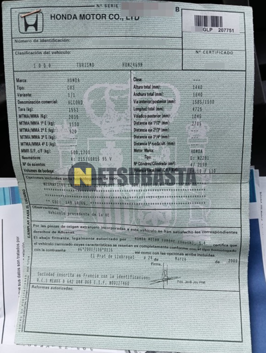 Subasta de Honda Accord 2.2 i-DTEC 2009 Siniestrados, Marca Honda, Modelo Accord 2.2 i-DTEC, Combustible Diésel, Kilometraje 358.000 KM, Fecha 1ª matriculación 03/2009, Matrícula ****GLP, Color Exterior , Color Interior , IVA REBU y Ubicación Madrid.