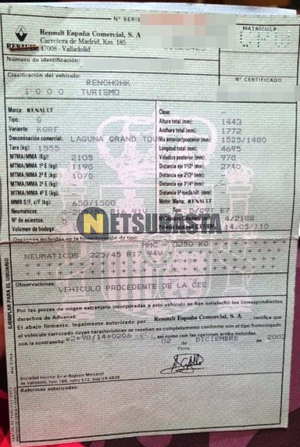 Subasta de Renault Laguna Grand Tour 2.2 dCi Aut. 2003 Averiados, Marca Renault, Modelo Laguna Grand Tour 2.2 dCi Aut., Combustible Diésel, Kilometraje 130.000 KM, Fecha 1ª matriculación 12/2003, Matrícula ****CPW, Color Exterior , Color Interior , IVA REBU y Ubicación Gerona.