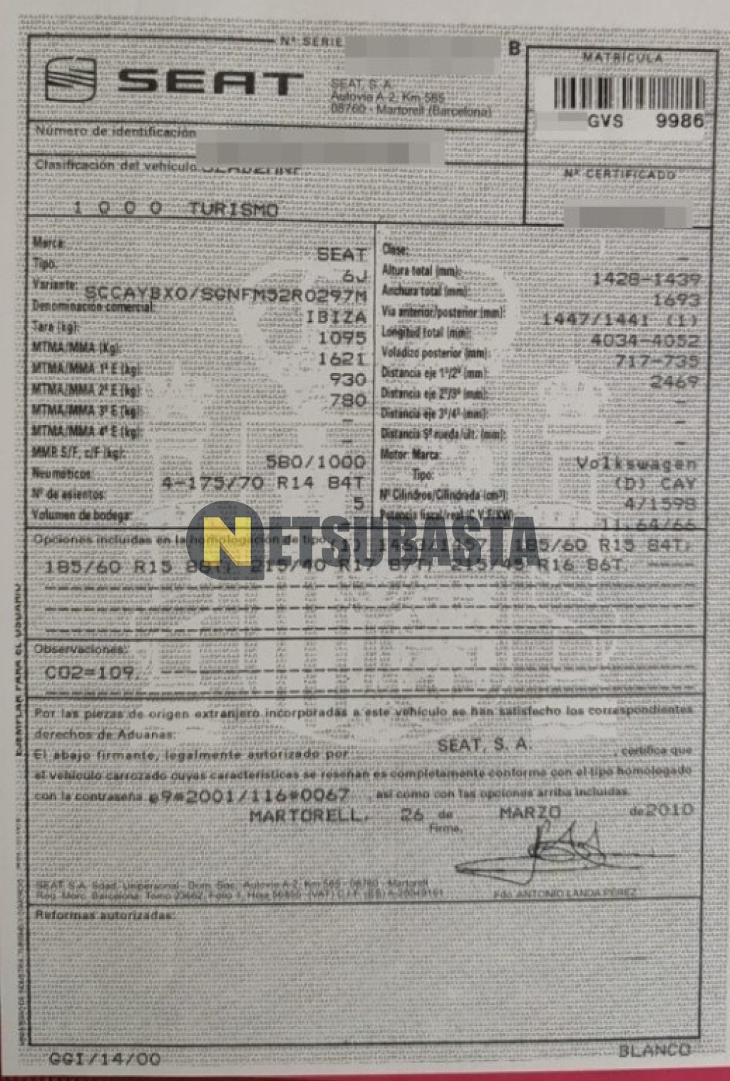 Subasta de Seat Ibiza 1.6 TDI 2010 Siniestrados, Marca Seat, Modelo Ibiza 1.6 TDI, Combustible Diésel, Kilometraje 195.000 KM, Fecha 1ª matriculación 04/2010, Matrícula ****GVS, Color Exterior , Color Interior , IVA REBU y Ubicación Tarragona.