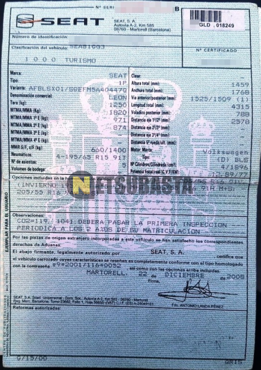 - Modelo:Leon 1.9 TDI