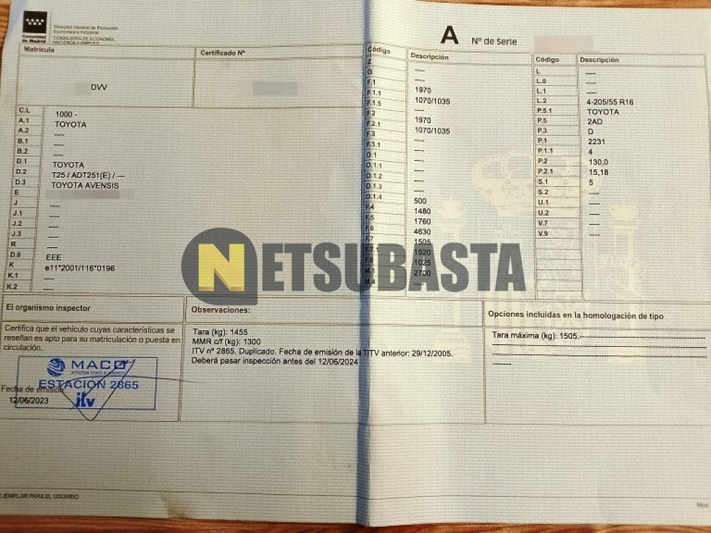 Recuerde que si lo desea, puede imprimir la ficha del vehículo Toyota Avensis Sedán 2.2 D-4D 2006 con todas sus características técnicas.