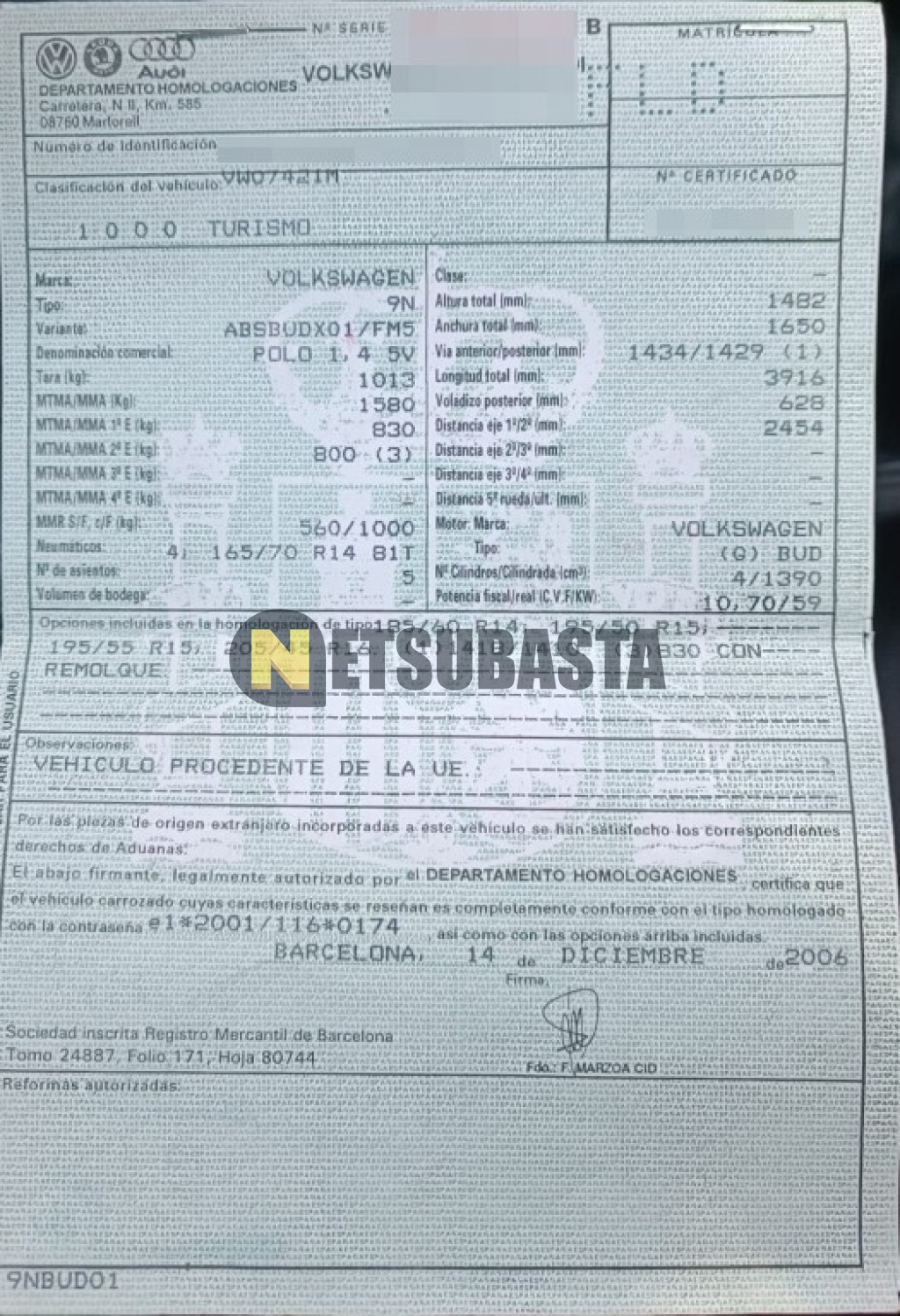 Subasta de Volkswagen Polo 1.4 2007 Averiados, Marca Volkswagen, Modelo Polo 1.4, Combustible Gasolina, Kilometraje 190.000 KM, Fecha 1ª matriculación 02/2007, Matrícula ****FLD, Color Exterior , Color Interior , IVA REBU y Ubicación Islas Baleares.
